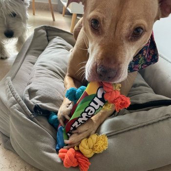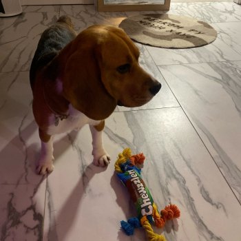 i bought this toy for my puppy, and it’s been an absolute hit! the bright colors immediately caught their attention, and the sturdy rope design has been great for their teething phase. my pup loves chewing on it, and it’s held up impressively well, even though they’re an aggressive chewer. the size is just right for them to carry around easily, and it’s perfect for both solo play and interactive games like tug-of-war. i’ve had this toy for a few weeks now, and there’s been no sign of fraying or damage, which is really impressive considering how much it gets used. one of the things i love most is how versatile it is—my dog can chew on it, play tug, or just toss it around. it’s become their favorite toy, and they always seem to have it nearby. i also appreciate how easy it is to clean; just a quick rinse, and it’s good to go again. overall, it’s been a fantastic purchase, and i’m really happy with the quality and durability. it’s definitely worth it for any dog owner looking for a fun, long-lasting toy that can handle lots of chewing and playtime.